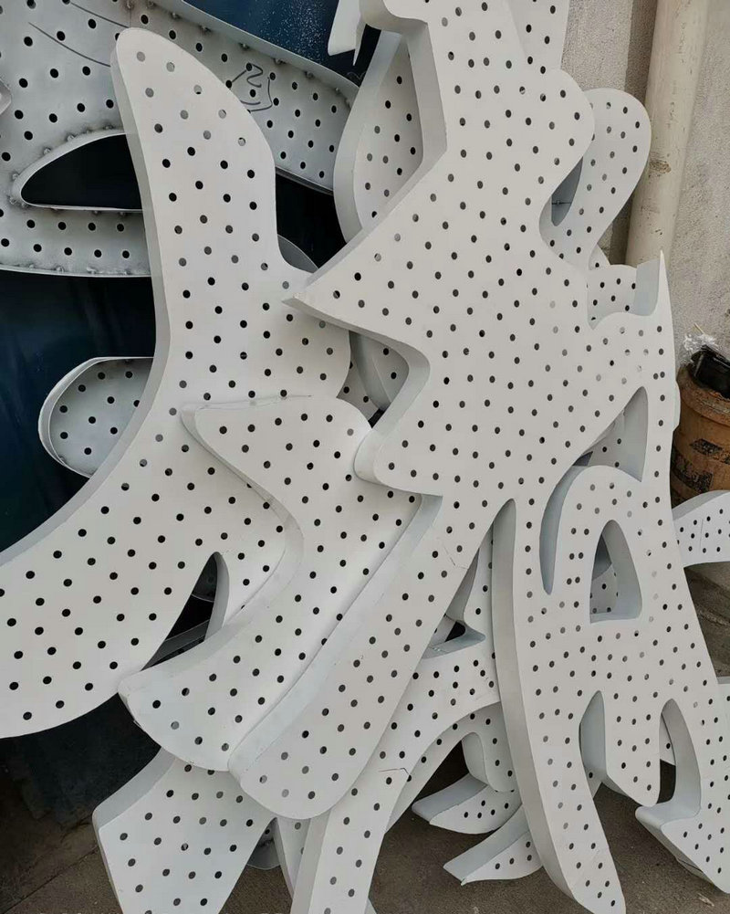 冲孔发光字人们有时又叫做LED冲孔发光字俗称LED外露发光字,是使用镀锌板,铝板等特殊的面板作为字体基板,通过对基板进行一系列的切割,冲孔,烤漆再安装LED光源并且还要对字体笔画进行拼装焊接终才能形成发光的广告标识。